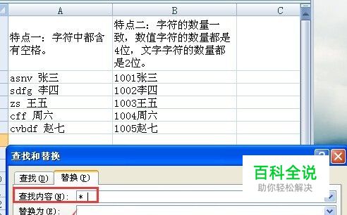 替换法:顾名思义就是将不需要的字符替换为“空白”就可以留下想要的字符。 首先按下“ctrl+f”健出现“查找替换”对话框,选择“替换”。在“查找内容”中输入“*+空格”(“替换为”中不需要输入任何内容),然后点击“全部替换”即可。