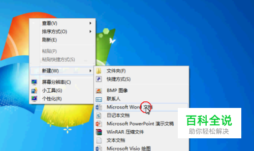 首先新建一个world文档。在桌面空白处单击鼠标右键——新建——world。