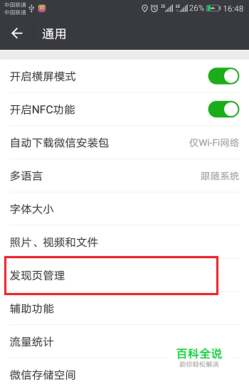 第四步在通用界面中,点击发现页管理,如下图所示:
