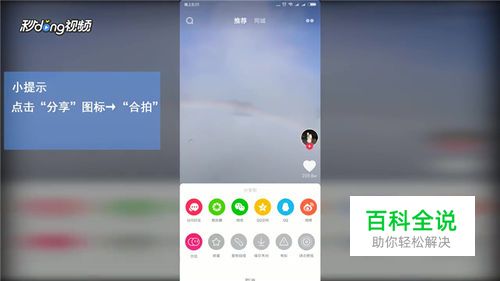 打开抖音客户端,找到相关的视频,点击右下方的“分享”图标, 然后点击“合拍”。