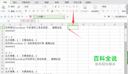 在后面的空白列中选择一列,在列头第一单元格输入1,
