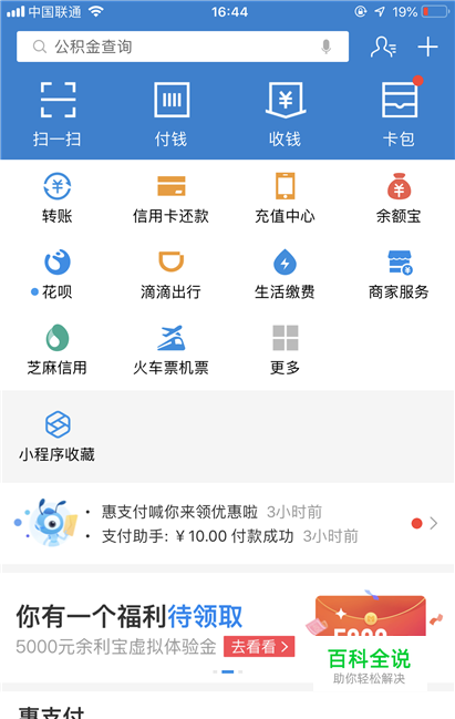 我们进入支付宝,进入之后,我们在横幅上面可以看到这个余利宝的虚拟体验金。