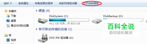 图1示例WIN7系统,打开我的计算机单击打开控制面板。