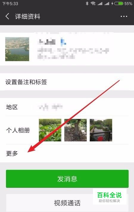接下来在打开的好友详细资料窗口,我们点击下面的“更多”快捷链接。