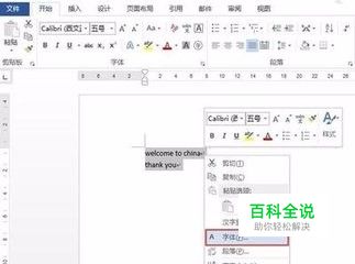 选中英文,然后右击选择“字体”选项。以上就是常规操作。