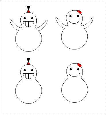 制作步骤: 1、新建一个200x200像素的Flash文档。首先我们要画一个简单的卡通娃娃,用椭圆工具画出如下两个椭圆。 图1 2、用挑选工具将两个椭圆的相交线选中,按Delete键删掉。 图2 3、在头顶中间画一个小椭圆,填充红色,作为红头绳。 图3
