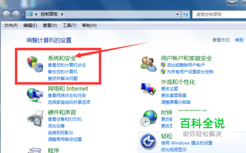 点击控制面板,变成如下界面找到系统和安全: