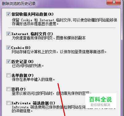 我们可以看到有放多以供删除的选择项,我们可以全部选择,也可以部分选择,然后点击确定开始删除这些信息,删除之后再上网就不会有历史记录等信息了。