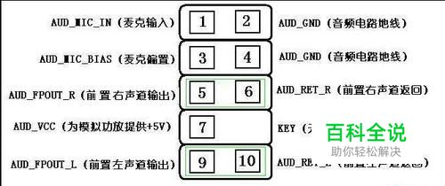HD机箱前置面板连接 前置音频面板有两个音频插口。这两个音频插口在AC97里是分工明确的,粉色的是插麦克,绿色的是插耳机。HD Audio则改为智能插口,两个插口都是双声道,既可以插耳机也可以插麦克,通过软件自动识别。因此,主板上的前置音频插座的针脚定义有了改变。 HD Audio的前置音频接口针脚定义从上面的图可以看到最明显的是HD Audio取消了5/6,9/10的跳线帽,同时针脚定义的名称也有了很大改变。下面是AC97的前置音频插座和针脚定义,可以与HD Audio的对比看出变化。下面是HD Audio与AC’97的针脚定义对比表:从上表可以看出,第1、2、3、5、9虽然名字有所变化,其功能没有改变。这就可以使HD Audio前置音频插座与AC97的前置音频面板兼容。目前市场上还没有HD Audio前置面板的机箱,都是AC97的。如果把AC97的前置音频面板连接到HA Audio的前置音频插座上,基本上与原来接到AC97插座一样,还是要把AC97的麦克输入(MIC_IN)连接1针,把麦克偏置(MIC_BIAS)连接在3针(如果机箱提供MIC_BIAS就连接,没有就不用)。同样把前置右声道输出(FPOUT_R)接到5针,前置右声道返回(RET_R)接到6针(也可以不接)。前置左声道输出(FPOUT_L)接到9针,前置左声道返回(RET_L)接到10针(也可以不接)。地线(GND)接到2针。参见下图:(注:第三针如果有的话一定要接上,不然麦克风会只有一个声道) AC97的连接请看后面第七节。