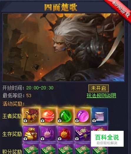 在游戏里,玩家的等级达到53级就可以参加活动啦!四面楚歌活动在每天下午的14:00点开启,在活动中,玩家将孤身一人面对其他玩家,他们都将成为你的对手,一旦三次重生机会都用完了,玩家就会被传送出活动外,也就与大奖无缘
