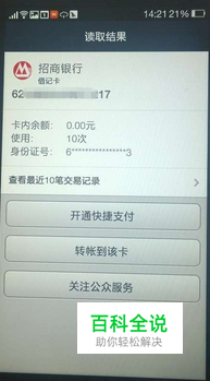 不同的银行卡读取的内容是不同的以招商银行为例,如图。