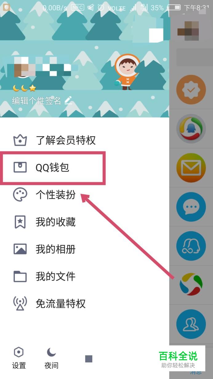 然后在左侧弹出的选项卡中找到“QQ钱包”,点击进入。