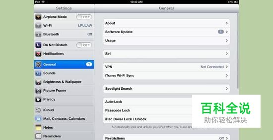 点击你的iPad主屏幕上的设置键,启动设置应用。