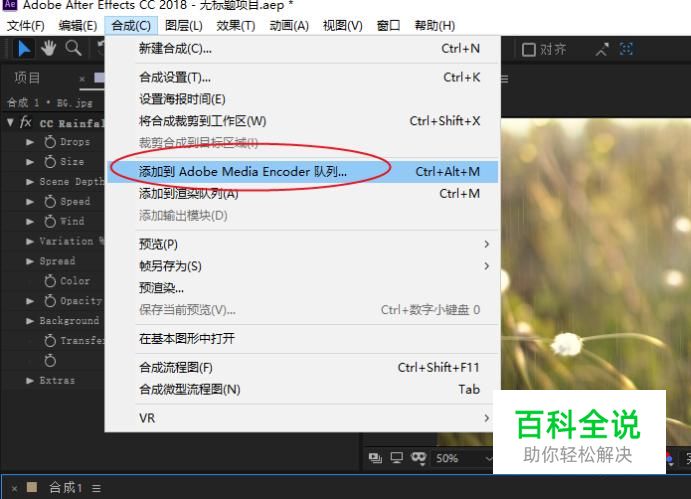 确定好要导出的合成,我们即可点击合成--添加到Adobe ME(缩写)。