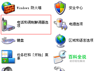 打开电脑控制面板,打开“电话和调制解调器选项”