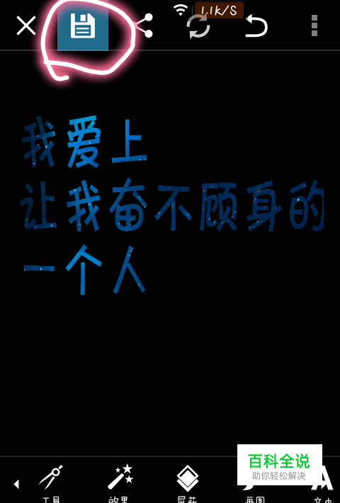 将想要打的字打进去,点击右上角的勾,保存。 PS:因为是国外的软件,所以中文字的字体,不会有太大变化,推荐大家还是使用英文或者拼音。