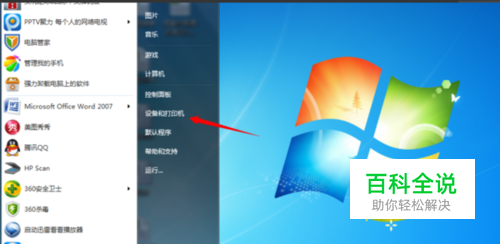 连接打印机,点击电脑左下角“开始”按钮,然后在开始栏右侧有一个“设备和打印机”。点击打开“设备和打印机”