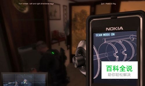 往下至底后往左,再从管道下去后往右继续趴墙移动,来到一处能放绳索的地方,这里先装备好录音装置再放绳索下攀。下攀后不久会来到会议室外墙,你可以清楚看到会议的状况但是里面的人绝对看不见你,立刻进行录音。千万别耽搁,因为moss不久后会将窗帘拉上,如果你还没有完成录音将会导致任务失败。