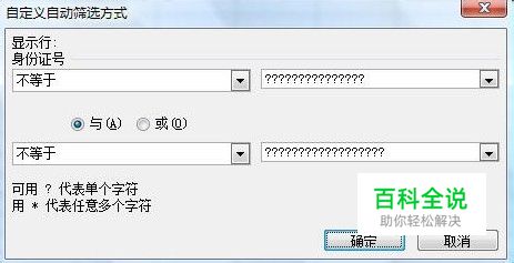 然后单击A1单元格右侧的下拉箭头,在弹出的下拉列表中选择“自定义”。弹出“自定义自动筛选方式”对话框。在左侧的下拉列表中都选择“不等于”,在右侧的两个文本框中分别输入15个和18个英文的“?”。注意两个筛选条件之间的逻辑关系为“与”。