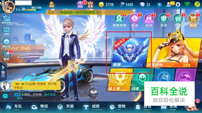 打开QQ飞车手游,点击图标中的“赛事”选项。