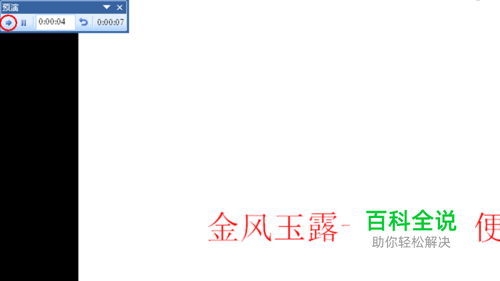 点击后,就会出现预演时间计时的小窗口,根据自己的需要选择时间的长短,设置好一张后点击左边下一页的箭头标识继续对剩下的幻灯片进行设置,全部设置好后,点击退出(可直接点Esc退出)(如图);