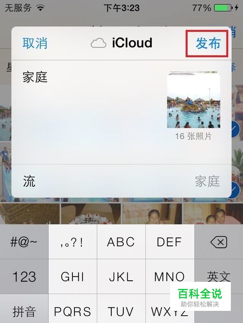 最后就进入了发布页面,点击【发布】按钮,即可发布,发布后,朋友的iphone在联网状态下,会收到icould共享流的推送信息,同意加入共享流即可下载查看照片。