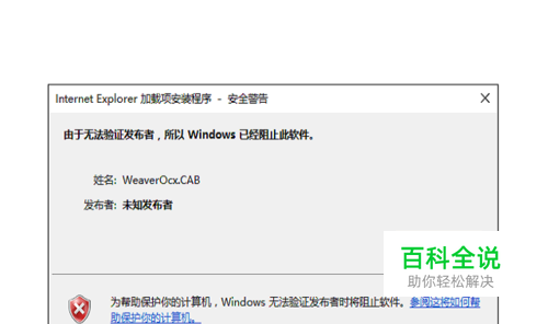 在IE缺省的安全策略下,很多控件的安装都是会被直接拒绝的,参考下图,IE提示不能安装,如何安装呢?