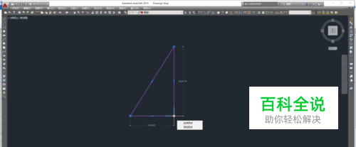 我们先打开CAD,这里我使用的是2015版,其他的版本也大同小异,先绘制一个任意的直角三角形,然后选中三角形,选择任意一夹点进入夹点状态后;