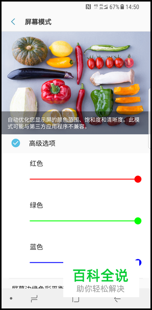 2.红绿蓝选项:设置-显示-屏幕模式-高级选项-红/绿/蓝三色。