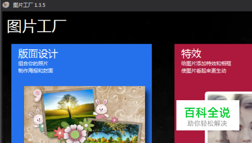 打开图片工厂,单击版面设计,利用图片自己海报或封面。