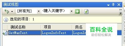 开始测试方法LogonInfo 在开始测试前,我们需要改写一下GetMaxTest()方法 /// <summary> ///GetMax 的测试 ///</summary> [TestMethod()] public void GetMaxTest() { LogonInfo target = new LogonInfo(); int[] aryNum = new int[] { 1, 3, 4 }; // 这里为aryNum赋一个初始值 int expected = 4; // 这里设置是GetMax方法预期值,从上面的初始值及GetMax方法的本意我们知道预期值应该是4 int actual; actual = target.GetMax(aryNum); Assert.AreEqual(expected, actual); //这里判断expected与actual是否相等,如果相等,则判定测试成功,反之失败 //Assert.Inconclusive("验证此测试方法的正确性。"); } 注意Assert.AreEqual(expected, actual)这一行代码,Assert.AreEqua是测试expected和actual是不是相等,相等就认为成功,不相等就认为失败。同样用来判定的方法共有以下几个: Assert.AreEqual() 测试指定的值是否相等,如果相等,则测试通过; Assert.Inconclusive() 表示一个未验证的测试; Assert.IsTrue() 测试指定的条件是否为True,如果为True,则测试通过; Assert.IsFalse() 测试指定的条件是否为False,如果为False,则测试通过; Assert.IsNull() 测试指定的对象是否为空引用,如果为空,则测试通过; Assert.IsNotNull() 测试指定的对象是否为非空,如果不为空,则测试通过; 代码改写完成后,我们打开vs菜单上的"测试"->"窗口"->"测试视图",会出现测试视图窗口,如下图: 在测试视图窗口中列出了所有我们创建的测试方法,鼠标移动到GetMaxTest方法上面,在右键中选择"运行选定内容",测试就开始啦。测试的结果会显示在"测试结果"的窗口中,如下图: 从上面的结果我们就可以知道方法测试是否通过了。然后我们也可以改变测试方法GetMaxTest()中的初始值与预期值,再次运行测试方法查看测试结果。