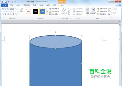 在下图中我们插入了一个圆柱体,现在要在此形状上添加文字“圆柱体”。