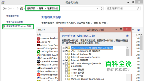 打开系统的“控制面板”-“程序”-“程序和功能”-“启动或关闭Windows功能”。