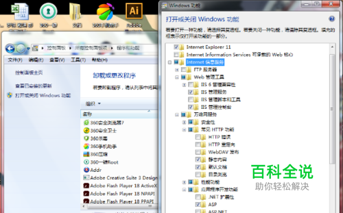 勾选一下选项,确保安装了IIS组件。
