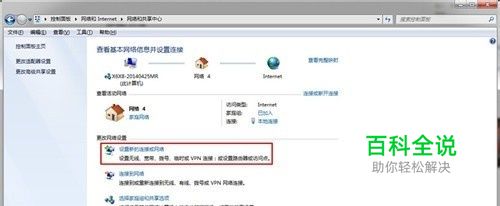 在控制面板中,找到“网络和共享”,点击进入“网络共享中心”,在窗口偏下的位置有个“更改网络配置”,选择第一个“设置新的连接和网络”。