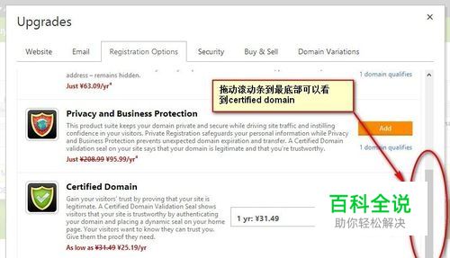 把滚动条拖到最后,找到certified domain,选择付费年限。