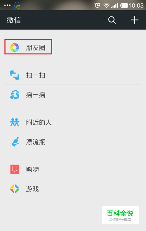 进入微信后,点击最下面的“发现”,然后再点击“朋友圈”,如图所示: