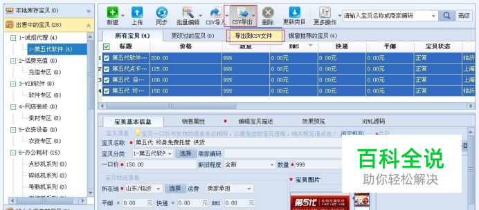 首先登陆到淘宝助理,选择你想要进行数据备份的淘宝宝贝,如图