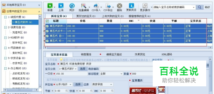 发布后的新宝贝,可以在销售中的产品进行查看或者再编辑。如图