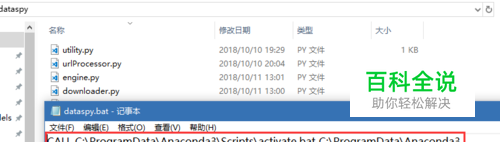 新建一个(在自己方便的地方,比如桌面)bat批处理文件,右键编辑。 然后第一行是复制的anaconda的进入虚拟环境的命令: CALL ...\activate.bat C:\....\Anaconda3 第二行是cd切换到要执行的python代码所在的路径。 最后一行是启动py文件。