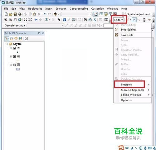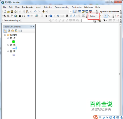 打开ArcMap,我们添加了点线面图层,然后找到Editor