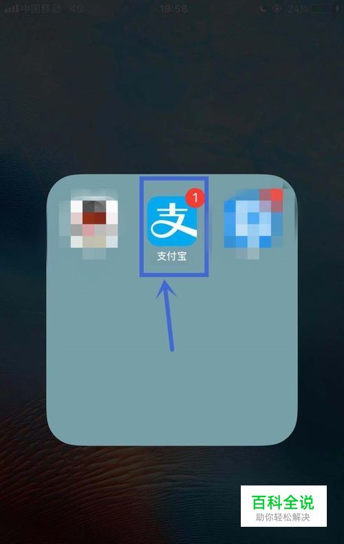 如图所示,在我们的手机桌面上找到支付宝并点击它
