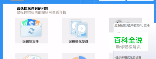 请打开该界面,根据我们的实际情况选择“U盘手机相机卡恢复”(鼠标放在恢复功能上可查看详情)。
