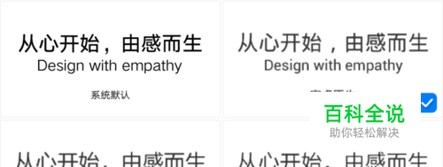 点击应用后字体就设置好了,被设置的字体右下方有一个√符号。