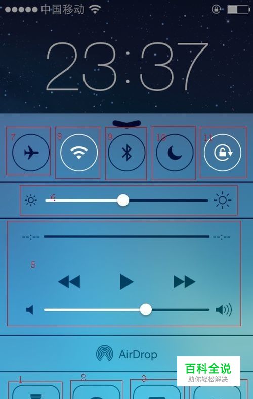 5、这个你应该一眼就看到了,对了,就是音乐播放器了,可以很方便的暂停或开始音乐!调整音乐进度及声量大小。 6、是调节亮度。拖动来调节。