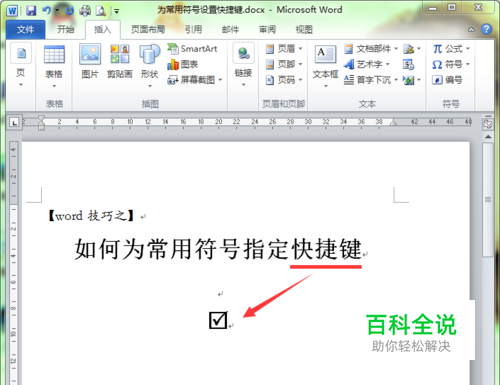 选择要设置快捷键的符号,单击“快捷键”按钮。这里选择带框的勾勾。