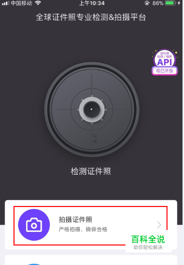 打开手机选择一款可以拍摄证件照的软件,选择【拍摄证件照】
