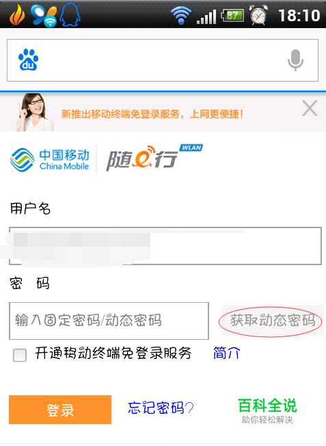 输入自己手机号码,点击获取动态密码。(或者自己原先设置的密码)