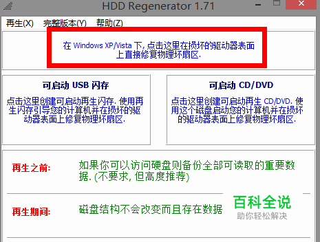 电脑用的时间久了,磕磕碰碰难免出现电脑硬盘坏道,那么如何修复呢?以下操作可以帮你解决硬盘坏道修复问题,使用HDD Regenerator不仅可以扫描出坏道数目,而且还可真正在物理上修复坏道。