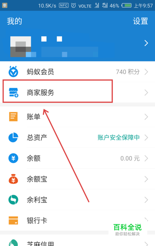 然后在界面上方找到【商家服务】,点击进入。